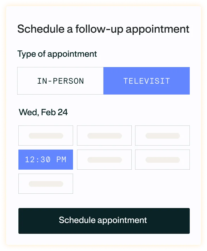 Automate scheduling follow-ups for patients that need extra care, so that you get compensated for the time delivering care. Elaborate syncs seamlessly with your scheduling systems, displaying real-time availability by provider and location. Ensure patients receive the best care by facilitating additional clinically necessary steps, such as follow-up visit scheduling and repeat testing.