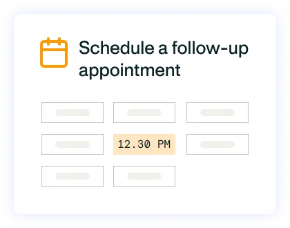 Automate scheduling follow-ups for patients that need extra care, so that you get compensated for the time delivering care. Elaborate syncs seamlessly with your scheduling systems, displaying real-time availability by provider and location. Ensure patients receive the best care by facilitating additional clinically necessary steps, such as follow-up visit scheduling and repeat testing.