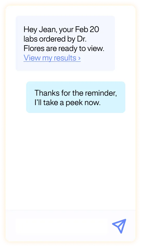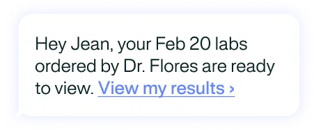 Patients get access to their labs quickly via text and email. With a 90% access rate, Elaborate beats average EMR access rates of 39%, ensuring your patients see their health data. Automated handling of normal and clinically insignificant results, so that you can focus on the patients that need you the most.